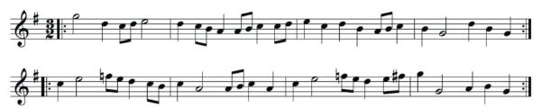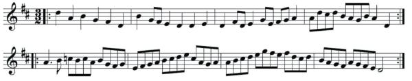 Here is a tune for the G pipes from the first section, Section A.