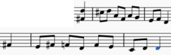 Faithful to the source material**:** Throughout the process, we were careful to stay as close to the transcriptions as possible. As an example, we used transcribed double stops as a basis for the second part, as here in Näckens polska after Jan Erik Hammarberg (Who was an expert fiddler widely known for his skill):