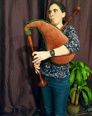 Aisling Holmes has been playing pipes since her teens, starting with Leicestershire smallpipes in D, then adding border/Flemish pipes in a variety of keys. She is particularly interested in English music, playing in harmony, and writing her own tunes. Over the last few years she has been involved in setting up the Sheffield Bagpipers, an informal group who get together to play a wide variety of music on pipes every month. During 2021 Aisling started a project to write a bagpipe tune every month and record it in at least two parts.